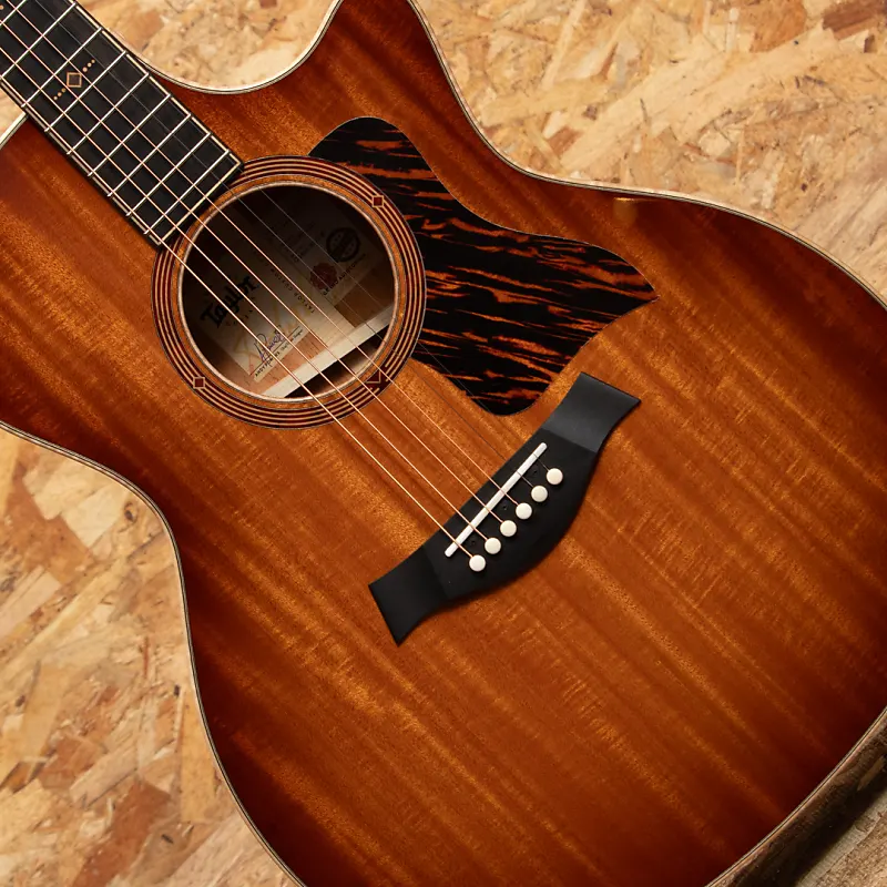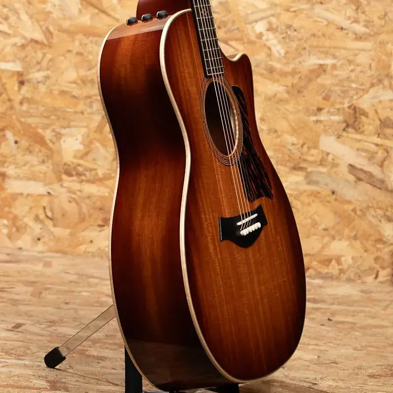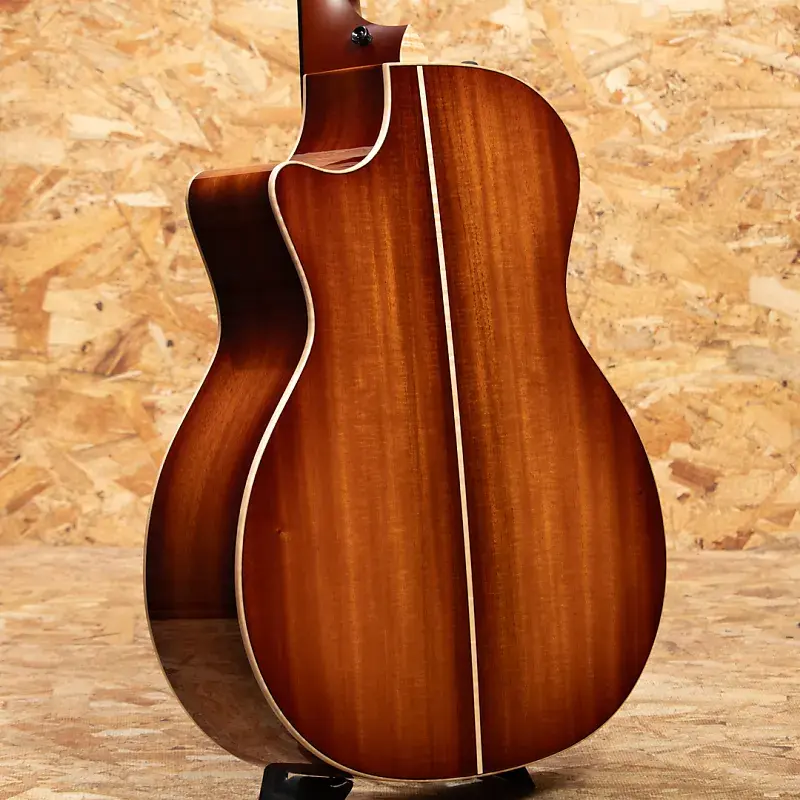 Taylor быстро рос с 2000-х годов и стал одним из ведущих мировых брендов акустических гитар, благодаря внедрению инновационных конструкций гитар. Он имеет высокую долю использования среди профессиональных музыкантов в Японии и особенно в Соединенных Штатах, и пользуется невероятной популярностью. Это устройство является продуктом на заказ, представленным на выставке NAMM 2024. Корпус из тропического махагони ленты, гриф из махагони, накладка и мост из эбена, головка грифа из кокоболо и самшита, инкрустация на накладке и розетке, окантовка из клена с огненной структурой, медиаторная накладка с полосой пламени, цвет с затенением на краях, система V-ригинга. Эта модель Grand Auditorium на заказ выполнена из задней стенки, боковин и верха из лентованного махагони с впечатляющей текстурой древесины, обладает хорошей отзывчивостью на прикосновение, глубиной, четкостью и присутствием в средних и высоких тонах, которые приятны и легко воспринимаются на слух. Кажется, что... совместим с игрой пальцами. Встроенный звукосниматель ES2 обеспечивает реалистичное акустическое звучание даже при выводе на линейный выход, что делает его подходящим для любой музыкальной сцены.