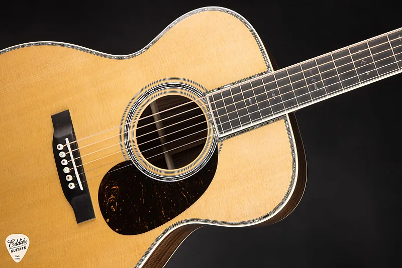 Martin 000-42 - это надежное сочетание звучания и мастерства, предназначенное для музыкантов, которые ценят исключительное звучание и впечатляющий внешний вид. Корпус Auditorium обеспечивает сбалансированный тон на всех шести струнах, с глубоким басом, насыщенными обертонами и чистыми высокими частотами, которые подходят для любого стиля игры. Изготовленная вручную с верхней декой из цельного ели и спиной и верхними и боковыми частями из цельного индийского палисандра, модель 000-42 производит резонансный, теплый звук. Глянцевая шейка из настоящего махагони с профилем Golden Era (GE) Modified Low Oval, высокопроизводительным сужением и мензурой 24,9” обеспечивает легкость игры и точность. Она украшена изысканными деталями из абалона, включая снежные вставки на окантованной накладке из черного дерева, сияющую розетку и перламутровую отделку на деке, которая элегантно обрамляет накладку. Дополненная окантовкой цвета старого белого, подставкой из черного дерева с костяными колышками и золотыми открытыми механиками, 000-42 - это гитара, которой можно доверять, чтобы раскрыть творческий потенциал музыканта.