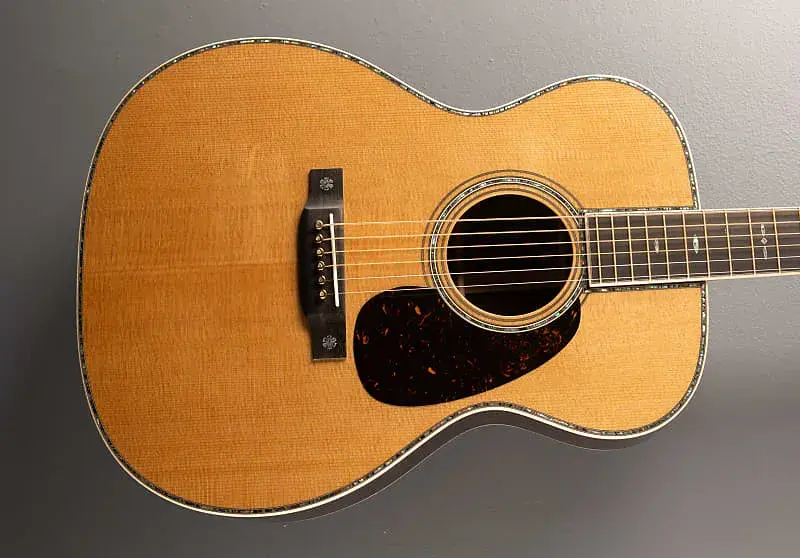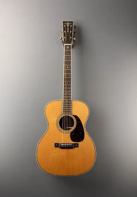 Натуральная, форма корпуса 000-14 ладов, верхняя дека из цельной ели с VTS, Адирондак Ель с зубчатыми X креплениями VTS, морское ушко с розеткой в несколько полос, переплет из европейского клена пламени, морское ушко с верхней инкрустацией в несколько полос и задней вставкой с несколькими полосами, задняя и боковые стороны из восточно-индийского палисандра, задняя часть из стиля 45 Golden Era, накладка из черного дерева со вставками из снежинки в стиле снежинки из морского дерева Golden Era 45 Style на винтажном роскошном грифе из высококачественного конуса в форме махагони, Длина мензуры 24,9 дюйма, ширина порожка 1 3/4 дюйма, тюнеры Waverly, с жестким корпусом