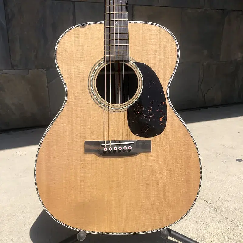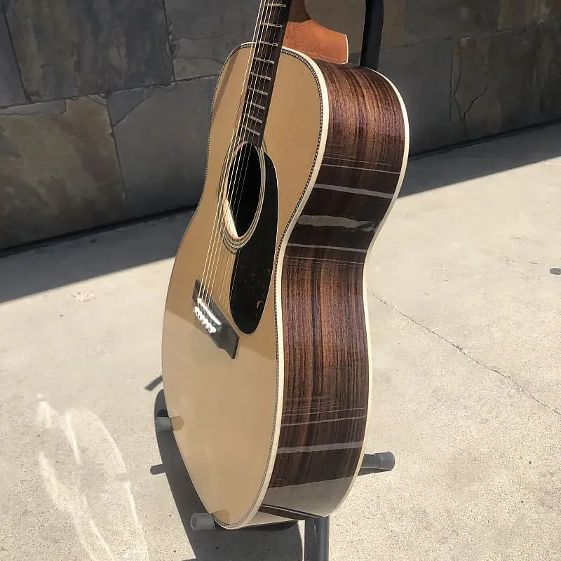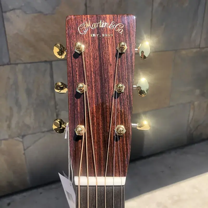 000-28 Modern Deluxe - это новое видение классики Martin Vintage. Эта гитара полна индивидуальных особенностей и современной технологии, которые нужно увидеть, потрогать и услышать лично. Винтажные элементы включают верхнюю дека Sitka spruce с системой Vintage Tone System (VTS), шейку с соединением «ласточкин хвост» и конструкцию на натуральном белковом клее, что придает богатый, полностью выдержанный звук Martin, вдохновляющий поколения музыкантов. Внешний вид уникален для нашей производственной линии: отделка европейским кленом с волной, стильные золотые лады, колки с открытой шестерней золотого цвета и уникальный логотип в стиле 1930-х, инкрустированный перламутром на головке грифа. Среди ультрасовременных особенностей - титановая анкерная тяга, колки Liquidmetal с красными точками и композитная мостовая пластина из углеродного волокна, которая увеличивает громкость без утяжеления. Также мы представили новую форму грифа, слегка асимметричную для максимального комфорта при игре по всему грифу. Эта гитара совершенно нестандартная.