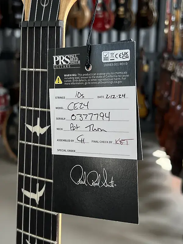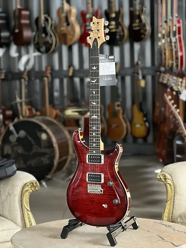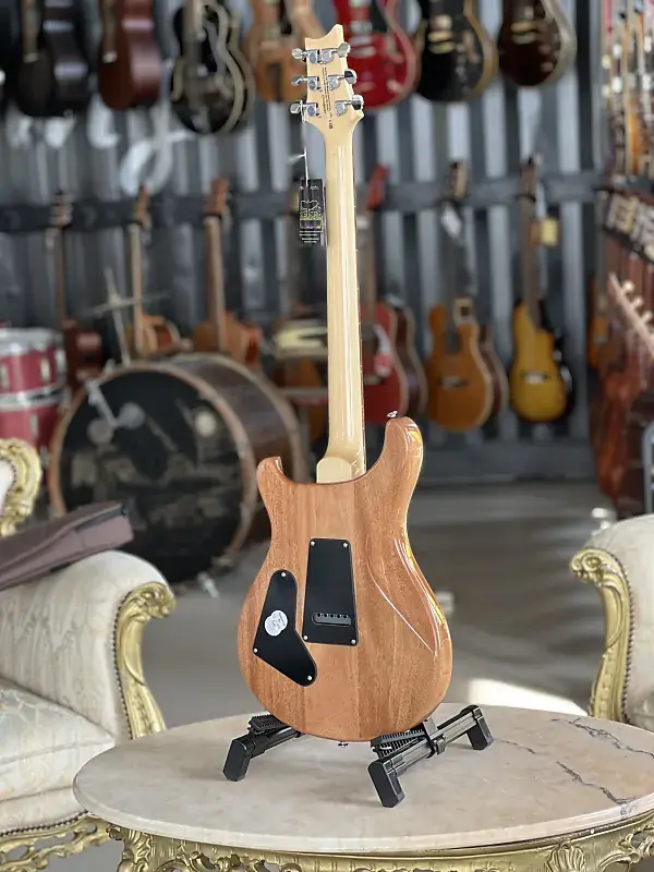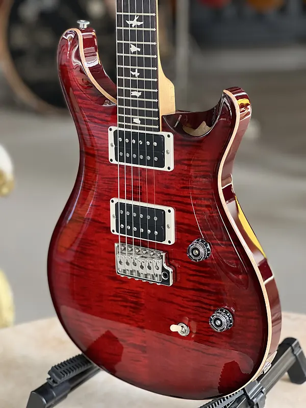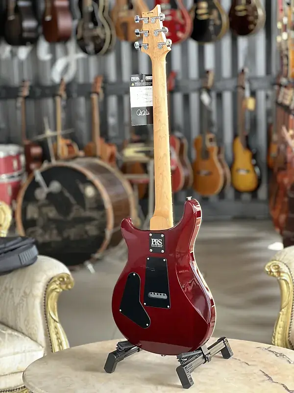 Корпус из красного дерева Арочная и фигурная кленовая дека Болтовое крепление кленовой шеи Профиль шеи: Pattern Thin Гриф из розового дерева Длина мензуры: 635 мм 24 лада Инкрустация в виде птиц Кленовая голова грифа с логотипом PRS Звукосниматели: 2x PRS 85/15 (требл и бас, хамбакер) 1x Регулятор громкости 1x Регулятор тембра (с функцией раздельного включения катушки Push/Pull) 3-позиционный переключатель Тремоло PRS Локируемые колки PRS Никелированная фурнитура Цвет: Fire Red Burst В комплекте чехол PRS Gig Bag