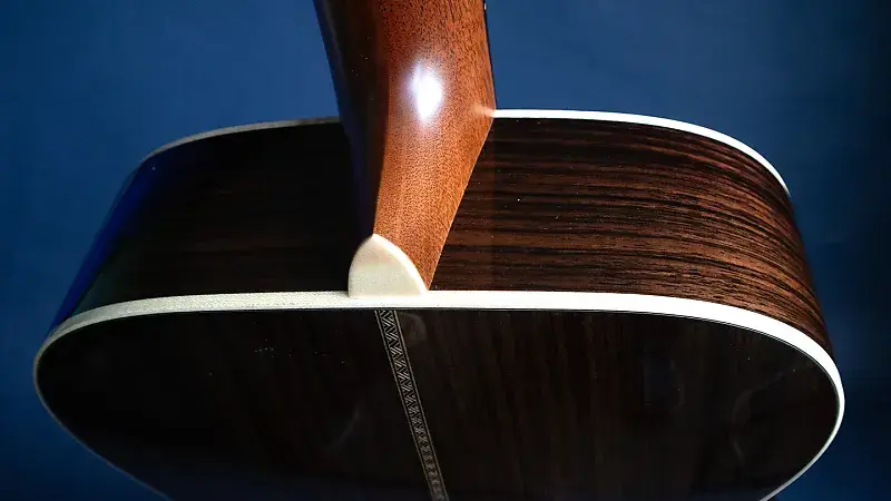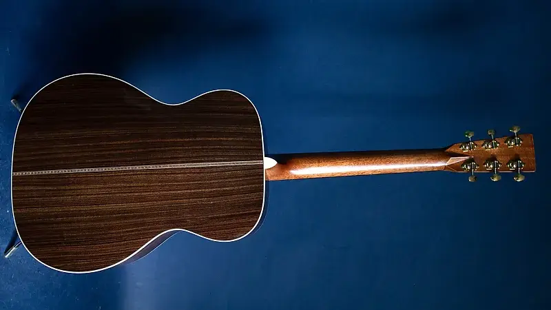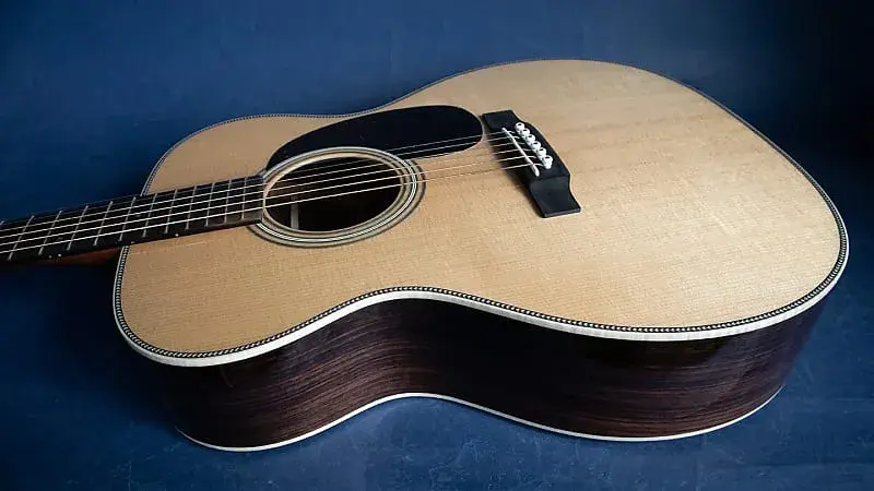 Гитара размера 000 с 14 ладами, верхняя дека из цельного ситковского ели, торрефированная для максимального звучания с использованием технологии VTS компании Martin, ценные породы индийского розового дерева для задней деки и боковин, гриф из махагона, длина мензуры 24,9 дюйма, ширина верхнего порожка 1 3/4 дюйма, слегка асимметричный гриф «Vintage Deluxe», окантовка из клена и инкрустация из елочки на верхней деке, гриф из черного дерева с абалоновыми ромбами и квадратами, встроенный логотип Martin в стиле 1930-х на головке грифа, открытые золотые колки и конструкция на натуральном белке. Колки Liquidmetal, легкая карбоновая пластина под мостом делают эту в целом очень винтажную гитару актуальной для 21-го века. Невероятное звучание и универсальность, прекрасный внешний вид, и материалы и конструкция высочайшего качества от наших друзей из Назарета, Пенсильвания, которые делают это с 1833 года.