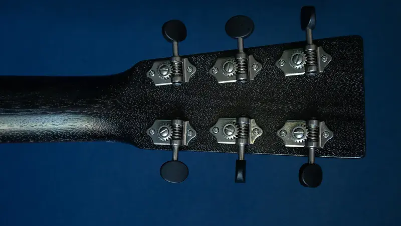 Черный дым, сатиновая отделка, мензура 24,9 дюйма, верхняя дека из ели Ситка на корпусе из красного дерева, гриф с необработанной накладкой из палисандра с инкрустацией в стиле 1955 года с 18 точками, ширина у верхнего порожка 1 3/4 дюйма, модифицированный низкий овал грифовой формы с коническим сужением для исполнителей, кость для верхнего порожка и седла, колки Golden Age Relic из никеля с черными ручками, окантовка и медиатор из ивороида отлично смотрятся на фоне отделки черным дымом, отличная гитара, поставляется с новым жестким чехлом.