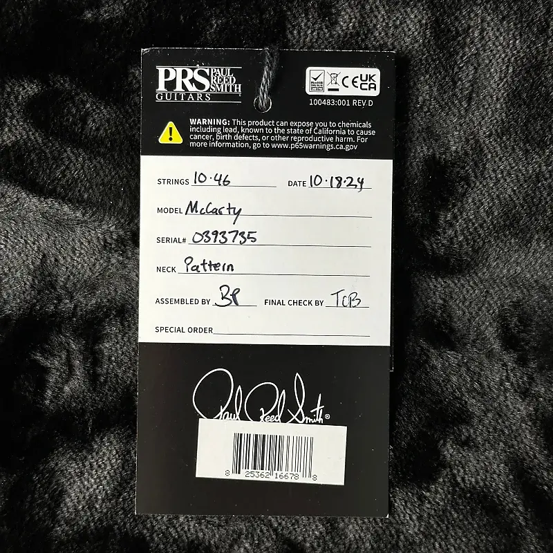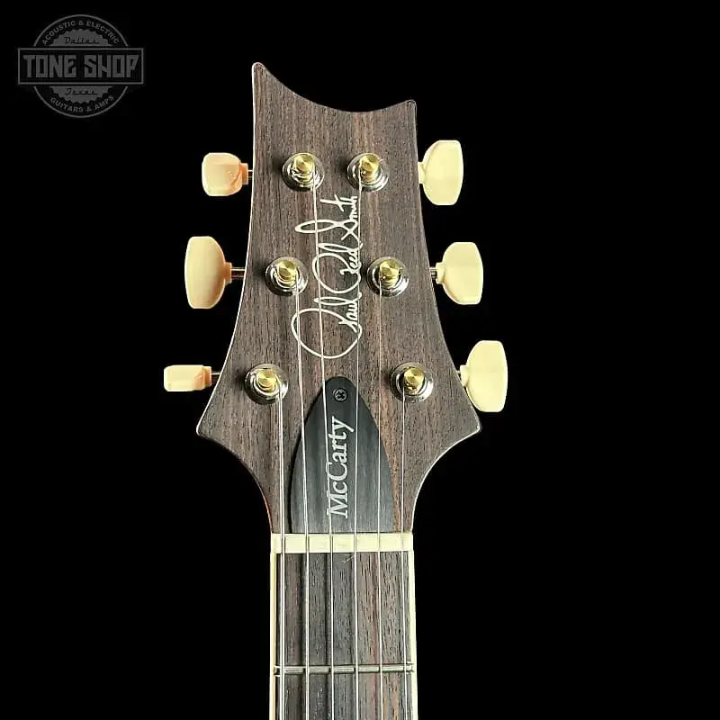 Названная в честь Теда МакКарти, пионера в области электрогитар и музыкальной индустрии, модель McCarty воплощает самые современные достижения компании PRS и одновременно обращается к золотому веку гитары. Эта гитара с винтажной отделкой оснащена грифом Pattern с 22 ладами и обрамлением, а также слегка утолщенной спинкой для улучшения тембра и сустейна. Модель PRS McCarty оснащена мостом типа stoptail с латунными вставками и нефиксирующими колками PRS Phase III с латунными осями для дополнительной резонансности и сустейна.