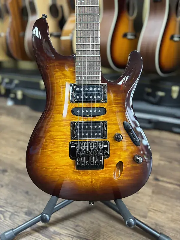 Электрогитара с цельным корпусом Ibanez S670QM сочетает агрессивное, разнообразное звучание с несомненно привлекательным внешним видом, создавая инструмент, готовый к шоу, которым вы будете гордиться на сцене. Ее звучание богато и резонансно благодаря корпусу из махагони, а великолепная крышка из кленового шпона с рисунком «quilted» подчеркивает ясность и яркость звука. А если вы быстрый гитарист, вы почувствуете себя как дома с изящным профилем грифа Wizard III. Благодаря комфортной изгибистой форме корпуса любой гитарист скажет вам, что электрогитара Ibanez S670QM с цельным корпусом - это гитара, на которой можно играть часами без усталости.