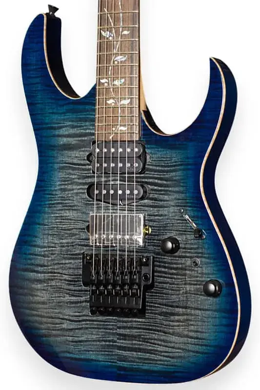 Отборная верхняя дека из флеймированного клена (4 мм) демонстрирует красивую текстуру древесины. Корпус из ольхи обеспечивает хорошо сбалансированный яркий тон, обогащенная резонансность и сустейн.