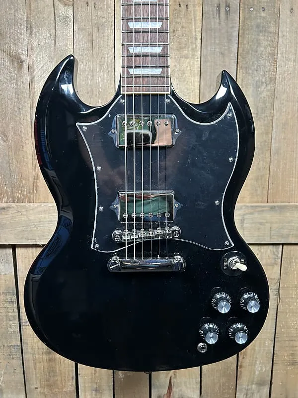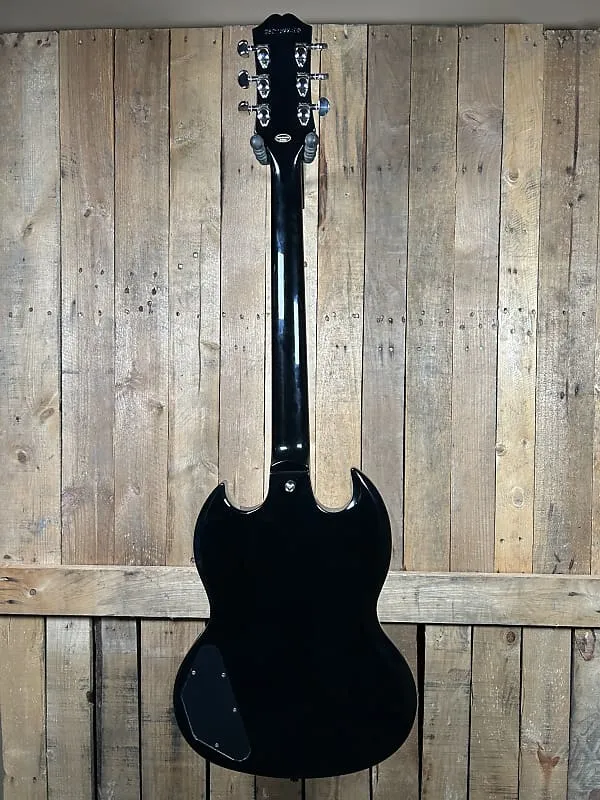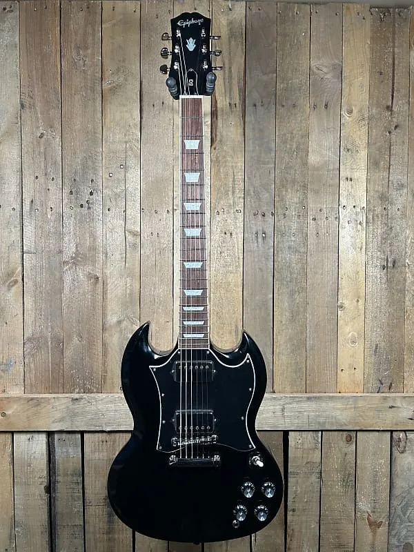 Epiphone Standard SG - Ebony обеспечивает классическое звучание и стиль рок-гитары в доступном и высокопроизводительном исполнении. Вдохновленная легендарной Gibson SG, эта модель оснащена цельным корпусом из красного дерева с культовым дизайном двойного выреза для легкого доступа к верхним ладам и яркой резонансности.
