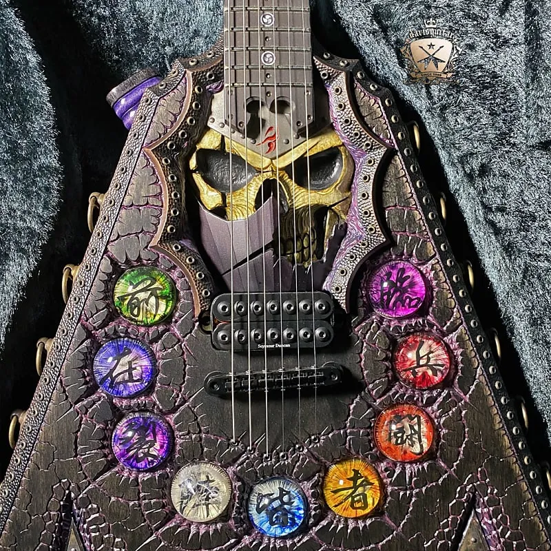 Это процесс производства модели "SHINOBI", представленная на NAMM 2016. Тематика - ниндзя. Дизайн вдохновлен классическим оружием ниндзя: "сюркен", "цепное оружие" и "меч". Производитель - Масао Омуро, мастер-лютник, которым гордится ESP. Мы также выпускали модели Rinne (реинкарнация), Armor, SHINIGAMI (жнец), KIZOKU (дворянин), GHOST SOLDIER и др.