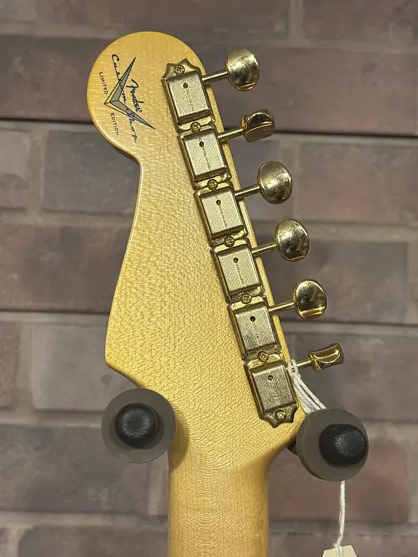 Другие премиальные особенности включают гриф с радиусом 9,5 дюймов и накладкой из палисандра с круглой лампой, 21 узкий высокий лад (6105) и кость на верхнем порожке, пятипозиционный переключатель звукоснимателей, винтажный синхронизированный тремоло-блок Custom Shop, тюнеры в винтажном стиле, струнодержатель с крыльями и нейлоновым разделителем, кейс премиум-класса, ремень и сертификат подлинности.