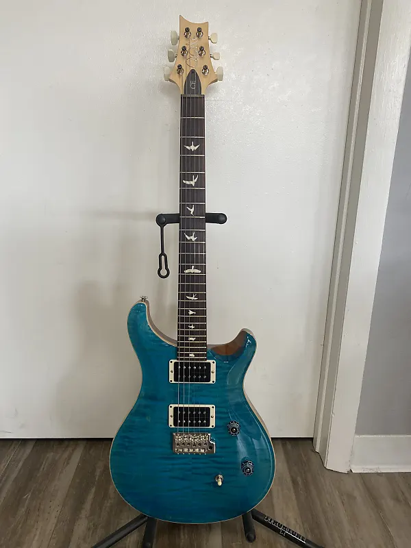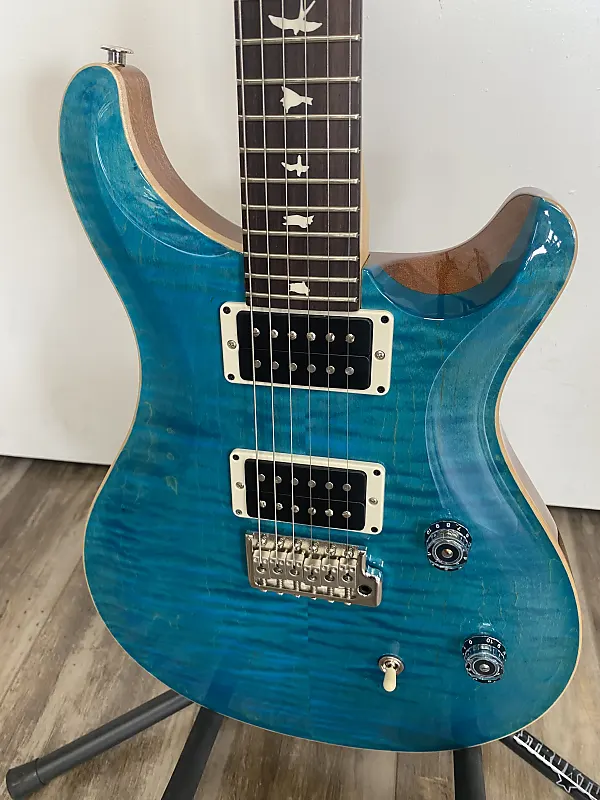 Новая гитара PRS CE24 в цвете Carroll Blue. Эта гитара отлично играет и звучит. Верхний слой дерева выглядит потрясающе и особенно выделяется благодаря синему цвету. В комплектацию входит официальная сумка PRS.