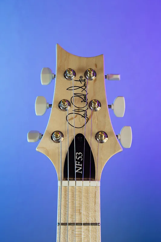 В сочетании с регуляторами громкости и тембра и трехпозиционным переключателем звукоснимателей, NF 53 позволяет музыкантам легко подбирать желаемое звучание. Стальная мостовая плита, тюнеры в винтажном стиле PRS и никелированная фурнитура обеспечивают точную и надежную стабильность настройки, а также способствуют поддержанию звукового сустейна и мощного тона.