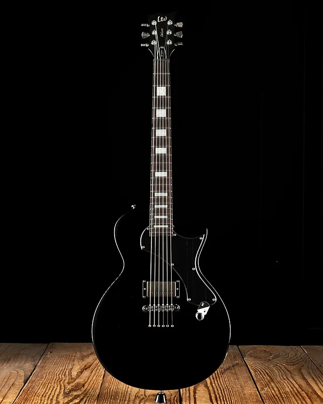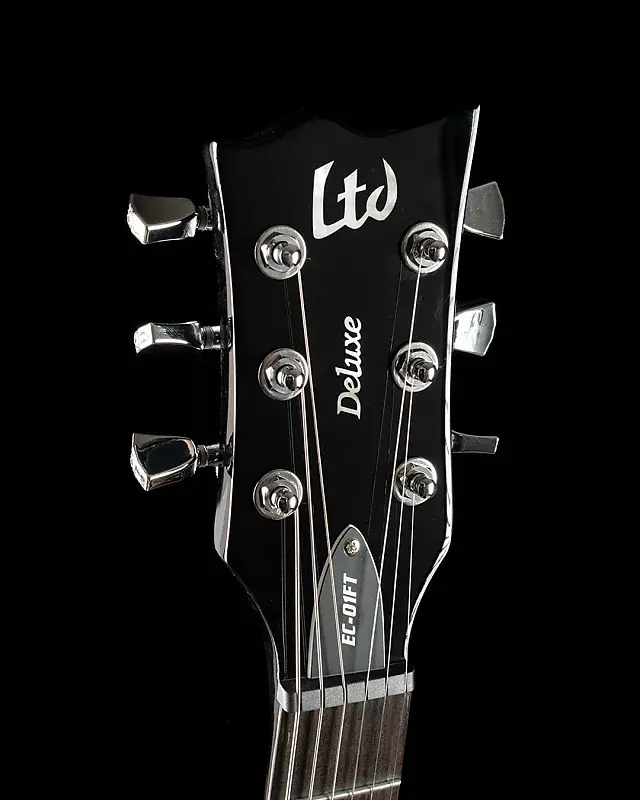 На первый взгляд, LTD Deluxe EC-01FT кажется простым и утонченным вариантом одноcкейпового дизайна ESP Eclipse, но при более внимательном рассмотрении эта гитара демонстрирует серьезные усовершенствования, которые делают ее одним из лучших выборов для музыкантов, стремящихся к максимально ярким выступлениям. С плоским корпусом и аккуратно расположенной электроникой ничто не мешает создавать как интенсивные риффы и мощные аккорды, так и мелодичные соло линии. Она имеет удобный гриф с мензурой 24,75 дюйма и плавной конструкцией set-thru, поэтому ничто не мешает вам достигать самых высоких ладов. Классический корпус из красного дерева и трехсекционный гриф из красного дерева обеспечивают насыщенное звучание, а фирменный матовый черный накладной пикгард помогает выделиться из толпы. EC-01FT оснащена порожком шириной 43 мм, что дает больше пространства на грифе для мощных аккордов. Гриф имеет накладку из эбена Macassar с перламутровыми инкрустациями. накладки из блока и 22 экстражирочных стальных лада. Углубленный мост TonePros TOM и сквозная струна корпуса позволяют сохранять низкую и комфортную высоту струн, одновременно максимизируя резонанс. Замковые колки LTD держат строй и значительно упрощают замену струн. Возможно, самым большим преимуществом EC-01FT является Custom 14 - новая индивидуальная звукосниматель, разработанная эксклюзивно для ESP компанией Seymour Duncan. Созданный специально для удовлетворения особенностей игры музыкантов ESP, гибкий и динамичный звукосниматель Custom 14 предлагает все, что вам нужно - от чистых, звонких вступлений до жаркого рока, классического метала и хардкора… а также самого мощного современного грува и четких, угловатых ритмичных линий, о которых вы только могли мечтать. Нажатие и вытягивание регулировки громкости делит этот звукосниматель на самые широкие диапазоны сингл-коил мостового положения, которые мы когда-либо предлагали.