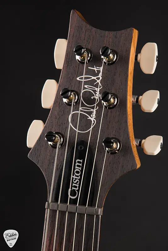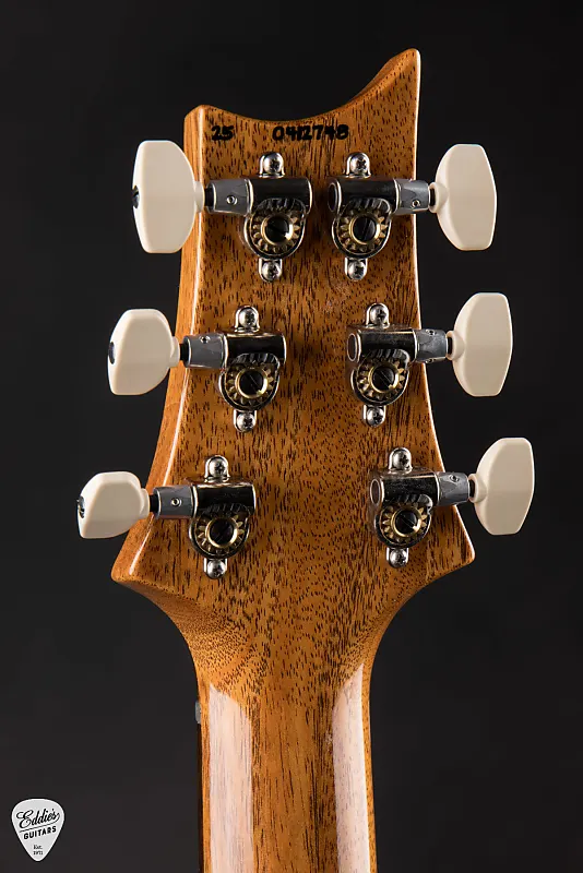 В основе удобства игры на Custom 24 лежит единая гриф из махагони с культовой формой грифа PRS Pattern Thin. Эта форма обеспечивает современное ощущение и подходит для быстрой и четкой игры, не жертвуя комфортом. Точные размеры, такие как глубина грифа 53/64" на 1-м ладу и 57/64" на 12-м ладу, а также ширина верхнего порожка 1 11/16", создают гриф, который одновременно быстрый и привычный. Длина мензуры 25" занимает оптимальное место между традиционными масштабами Fender и Gibson, обеспечивая как ясность, так и теплоту звучания. Верх грифа выполнен из грифовой накладки из розового дерева с радиусом 10" и фирменными PRS Bird вставками, обеспечивая плавность игры и визуальную изысканность. Логотип с подписью на головке придает изделию завершающий штрих. премиальное ощущение.