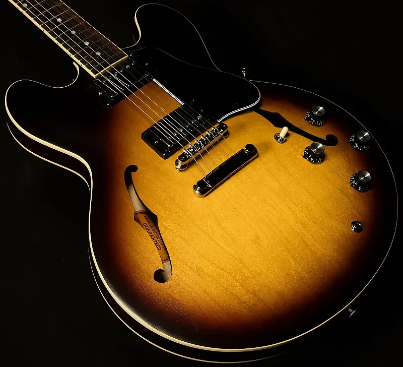 Точка означает конец в мире пунктуации, но в мире музыки точка модели 335 знаменует начало невероятных звуков! Одной из флагманских моделей Gibson является Dot - современная версия ES-335, сочетающая классический стиль с удобными для музыканта элементами и предлагающая потрясающее соотношение цена-качество. Внешне они напоминают классические ES-335 пятидесятых годов с инкрустацией в виде точек и «ушами Микки Мауса», но их элегантные сатиновые отделки придают им свежий вид для современности.