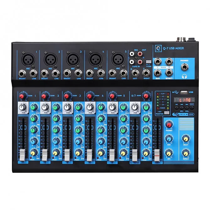 - 7-канальный микшер с MP3-плеером USB / Bluetooth