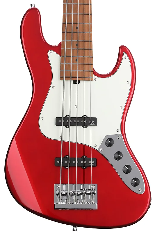 Электрический бас-гитара с 5 струнами, корпус из окового дерева, гриф из клена, накладка из клена, 2 сингл-койл звукоснимателя и активная электроника - металлический красный цвет Candy Apple.