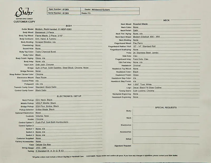 - Мост: Хромированный Suhr 2-струнный тремоло с стальным блоком и цельными седлами