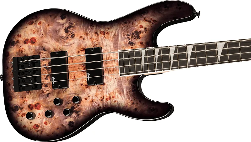 Двойные высокопроизводительные хамбакинговые басовые звукосниматели Jackson создают чудовищное рычание низких частот, в то время как бридж HiMass обеспечивает невероятную стабильность, улучшенный сустейн и более смелый тон. Тон можно уточнить и настроить с помощью пары регуляторов громкости и активного трехполосного эквалайзера. Наполненный энергией и ценностью, Concert Bass JS3P доступен в черном цвете Burst Burl и прозрачном черном цвете с черной фурнитурой.