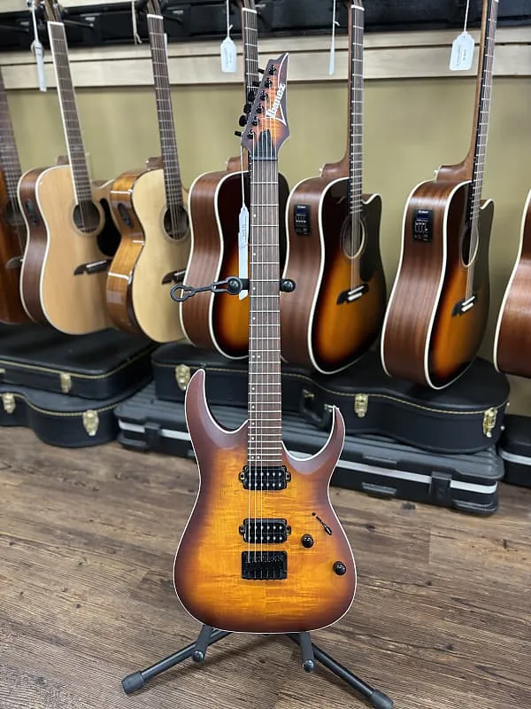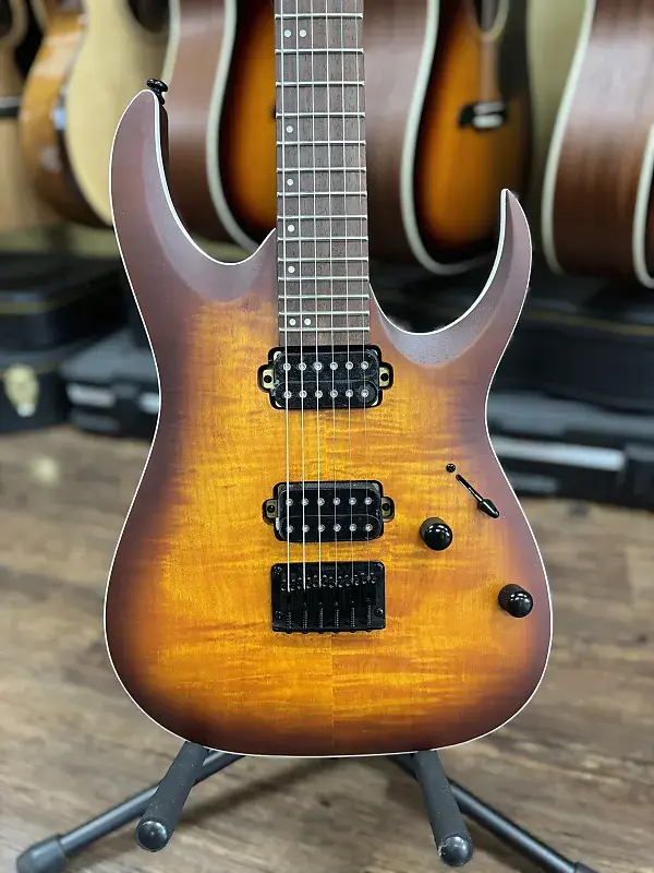 Электрогитара Ibanez RGA42FM с цельным корпусом оснащена быстрым грифом Wizard III из клена и накладкой грифа из хатоба с радиусом 15,7 дюйма, специально разработана для игры на высокой скорости с минимальным сопротивлением струн. Все начинается с идеально сбалансированного корпуса RG из красного дерева с великолепной верхней крышкой из фигурного клена. Вам понравится, как эта гитара ощущается в руках, как только вы ее возьмете. Кроме того, она оснащена двумя мощными хамбакерами Quantum, идеально подходящими для рока, блюза и метала.