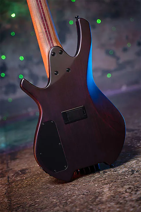 Головка грифа и индивидуальные мосты были тщательно разработаны и тщательно протестированы для обеспечения максимальной стабильности настройки и игры, а также чтобы Space 5 оставался легким, компактным и удобным в эксплуатации. по возможности. Нулевая ладовая пружина выполняет функцию басового порожка, устанавливая высоту струн над грифом при игре на открытых нотах. Порожек по-прежнему используется как направляющая для установки расстояния между струнами перед настройкой на механиках. Поскольку порожек не отвечает за открытые ноты, музыканты могут менять калибр струн без необходимости подгонки или замены порожка, и избегать нежелательного трения между порожком и струнами. Обожженный клен, известный своим сфокусированным средним диапазоном, выходит на передний план, поддерживаемый яркой четкостью пурпурного дерева и богатым теплом ореха.