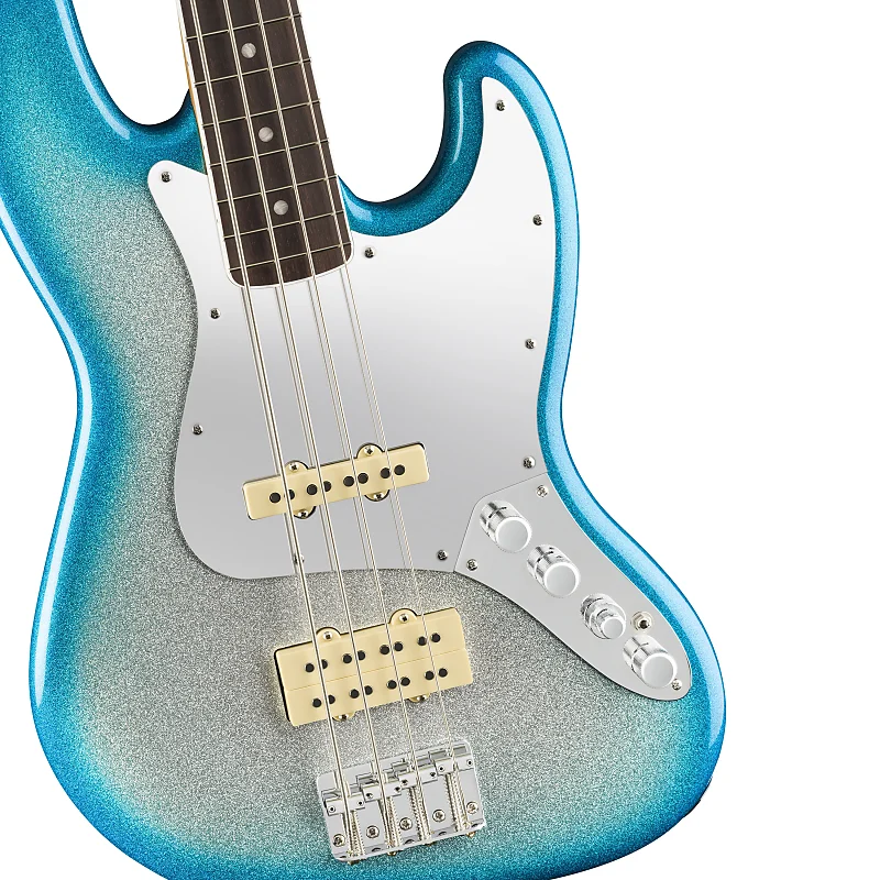 От ослепительной отделки Sky Burst Sparkle до блестящей хромированной фурнитуры и зеркального накладного грифа - каждая деталь этого Jazz Bass отражает смелое художественное видение Blu. Ассиметричный корпус из ясеня имеет полости для уменьшения веса и обеспечения максимального комфорта. Гриф из клена с сатинированной отделкой, накладка из розового дерева шириной 9,5 дюймов с окантовкой и высокие винтажные ладовые порожки обеспечивают плавность игры. Кастомный бас-хамбакер Blu DeTiger Fireball и звукосниматели Player Plus Noiseless Jazz Bass объединяют винтажную эстетику с современным звучанием.
