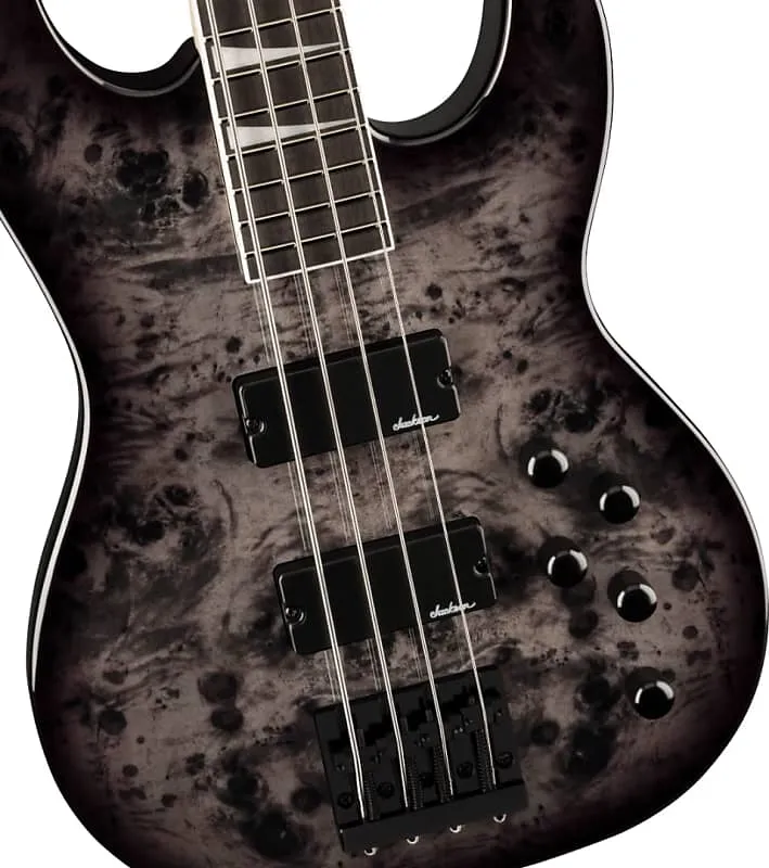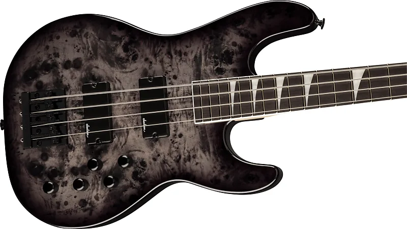 Двойные высокопроизводительные хамбакинговые басовые звукосниматели Jackson создают чудовищное рычание низких частот, в то время как бридж HiMass обеспечивает невероятную стабильность, улучшенный сустейн и более смелый тон. Тон можно уточнить и настроить с помощью пары регуляторов громкости и активного трехполосного эквалайзера. Наполненный энергией и ценностью, Concert Bass JS3P доступен в черном цвете Burst Burl и прозрачном черном цвете с черной фурнитурой.