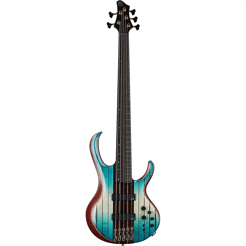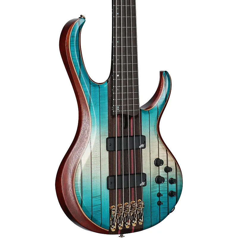 BTB1935 оснащен верхом и задней частью из кудрявого клена с полосами из ореха. Корпус из африканского махагони обеспечивает превосходную тональную ясность и звучание. Элегантный корпус имеет изогнутую фаску, создающую более утонченный облик. Прочные лады из нержавеющей стали дают яркое звучание, а BTB1935 оснащен нулевым ладом для точной интонации и минимальной высоты струн. Нулевой лад также помогает открытым струнам звучать как зажатые. Мост MR5S позволяет широко регулировать интонацию, а каждый изолированный мост надежно закреплен на корпусе для максимальной передачи вибраций без помех. Персонализированная электроника Ibanez с 3-полосным эквалайзером, переключателем обхода EQ и 3-позиционным переключателем средних частот позволяет точно настраивать тон (250 Гц, 450 Гц и 700 Гц). При активации обхода EQ ручка управления высокими частотами работает как пассивный регулятор тона для выхода инструмента. Звукосниматели Aguilar DCB обеспечивают хорошо развитые обертона, звучание с продолжением нот и эффект затухания. Двойные керамические брусковые звукосниматели магниты обеспечивают динамичное и отзывчивое звучание. Сочетание эквалайзера и звукоснимателей Aguilar обещает превосходные тембровые возможности в любой игровой ситуации. BTB1935 комплектуется струнами D'Addario NYXL, которые обеспечивают широкий динамический диапазон и чувствительный гармонический отклик. Глубокий вырез нижнего рожка позволяет без усилий добираться до верхних ладов. Соединение грифа на 18-м ладу верхнего рожка обеспечивает устойчивость тона и стабильность грифа. 35-дюймовый сквозной гриф BTB выполнен из 7 частей дерева Panga Panga и Purpleheart и оснащен двумя графитовыми стержнями внутри для дополнительной стабильности. Кроме того, регулировка в конце грифа позволяет легко настраивать его. Увеличенная длина мензуры способствует чистому звучанию и достаточному натяжению нижних струн, одновременно добавляя звонкое сустейн звучанию верхних струн. Другие особенности включают премиальную обработку краев ладов, надежный высокотехнологичный фиксирующий выходной разъем Neutrik и колки Gotoh. Характеристики Гриф: BTB5 7-струнный Panga Panga/Purpleheart, выполненный по технологии neck-through с графитовыми усилительными стержнями Длина мензуры: 889 мм / 35 дюймов Корпус: Кудрявый клен / верхняя дека из ореха / крылья из африканского махагони / задняя дека из кудрявого клена Гриф: Окантовка грифa из Panga Panga с инкрустацией из перламутра в виде точек Лады: Средние из нержавеющей стали с обработкой кромок Звукосниматель грифа: Aguilar DCB Звукосниматель мостика: Aguilar DCB Эквалайзер: Ibanez Custom Electronics 3-полосный EQ Регуляторы: Выключатель обхода EQ (пассивный контроль тембра на регуляторе высоких частот), 3-позиционный переключатель средней частоты Мост: MR5S (расстояние между струнами 19 мм) Фурнитура: Золото Чехол: В комплекте