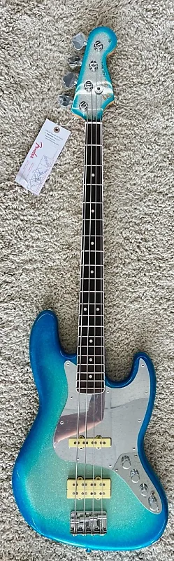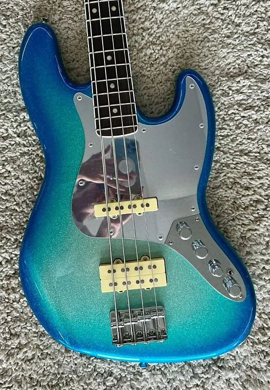 От ослепительного Sky Burst Sparkle до сверкающей хромированной фурнитуры и зеркального пикгварда - каждая деталь на этой Jazz Bass отражает стиль Blu. смелое художественное видение. Корпус из ясеня с камерой создан, чтобы сделать эту бас-гитару максимально легкой и удобной. Гриф из клена с сатинированной отделкой, окантованная накладка из палисандра радиусом 9,5 дюймов и высокие винтажные лады обеспечивают плавность игры. Кастомный хамбакер для баса Blu DeTiger Fireball и звукосниматели Player Plus Noiseless Jazz Bass соединяют винтажное очарование с современной мощью. Бас также оснащен предусилителем Player Plus на 18 В с трехполосным эквалайзером и переключателем активного/пассивного режима, что отлично подходит для формирования вашего тона и идеально для передачи фирменного «щелчка» и рыка, которые определяют звучание Blu.