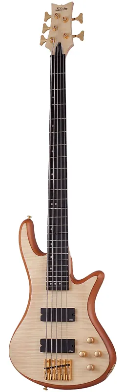 Басс Schecter Stiletto Custom-5: яркий и современный звук, выделяющийся благодаря звукоснимателям EMG HZ, массивному мосту S-TEK и активному эквалайзеру 12 дБ. Гриф из клееного клена и ореха с накладкой из палисандра соединен с корпусом из красного дерева с помощью шести болтов для непревзойденной стабильности. Верх из фигурного клена, алмазные инкрустации на грифе и черная фурнитура придают эффектный вид. Длина мензуры 35" улучшает чистоту звучания низкой ноты B.