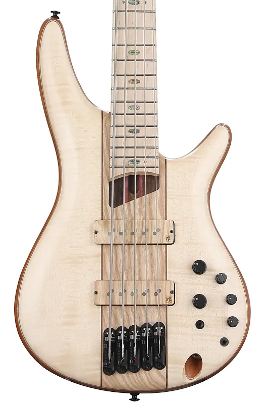 5-струнный электрический бас с верхней дека из клена/ясеня, корпус из красного дерева, 5-слойная шея из панга-панга/пурпурного дерева, гриф из клена, 2 сингл-койл звукоснимателя - натуральный, с низким глянцем.