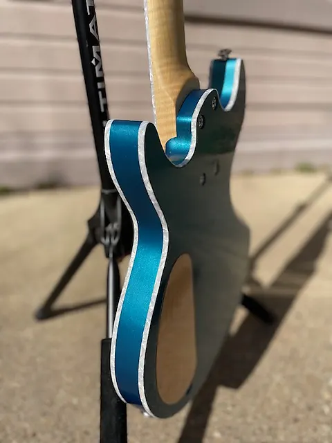 - Корпус из двух частей ольхи в цвете Аквамарин металлик с глянцевой отделкой