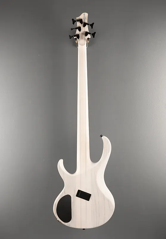 Прозрачный белый матовый, верхняя дека из ясеня с крыльями из окуме/ясеня, грифовая накладка из панга-панга с радиусом 15,75" с вставками из абалона и средними ладами из нержавеющей стали на грифе BTB5, выполненном из 5 частей клена/ореха с графитовыми армирующими стержнями, мультидлина струн 37"-35", ширина порожка 1,85", звукосниматели T1 для грифа и бриджа, индивидуальная электроника Ibanez с 3-полосным эквалайзером с переключателем обхода EQ (пассивный тембровый контроль на регуляторе высоких частот) и 3-позиционный переключатель средней частоты, бридж MR5S, закрытые колки, вес 9,7 фунта, в комплекте с жестким чехлом Ibanez.