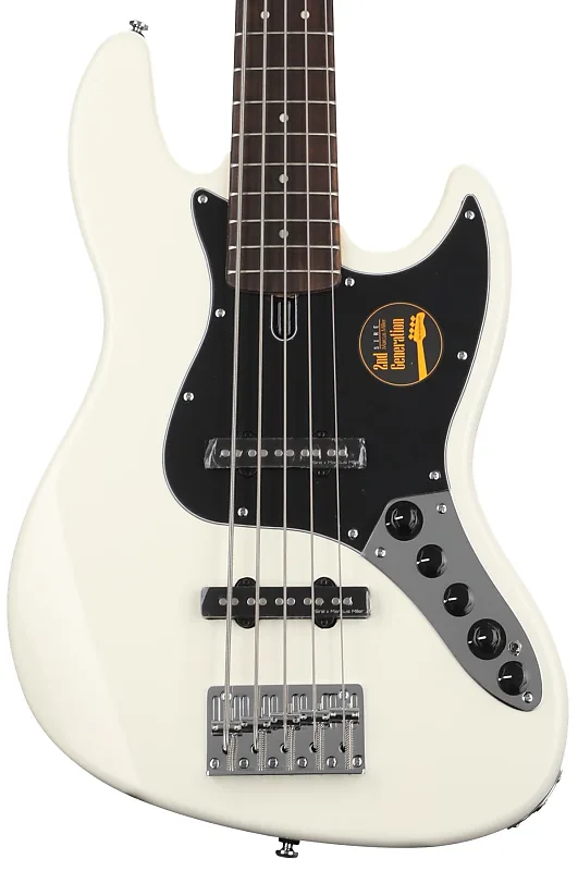 5-струнный электрический бас с корпусом из красного дерева, грифом из клена, накладкой на гриф из палисандра и двумя сингл-пикапами - антикварно-белый.