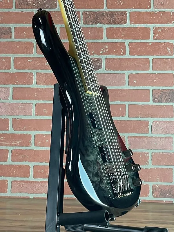 Собранный на базе корпуса из махагони с великолепными фигурными кленовыми крыльями, Stiletto Extreme 5 сочетает богатый, теплый сустейн с захватывающей визуальной привлекательностью, благодаря которой каждый инструмент уникален. Прозрачная черная отделка подчеркивает естественные узоры пламени на фигурном клене и придает стильный профессиональный вид, привлекающий внимание на сцене. сцене. Крылья корпуса из махагони обеспечивают теплый, энергичный средний диапазон, который басисты любят как для игры пальцами, так и для техник слэпа.