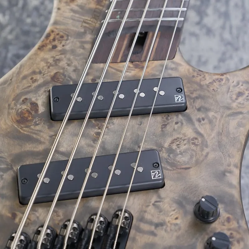 Он оснащен 9-слойной грифовой конструкцией Panga Panga / Walnut с графитовыми стержнями для высокой стабильности и упругости. Полый корпус изготовлен из легкой африканской махагонии с верхом из тополя Burl, что обеспечивает теплое и резонансное звучание без лишнего веса. Гриф с окантовкой из Panga Panga имеет 24 средних стальных лада и смещенные абалоновые точечные инкрустации.