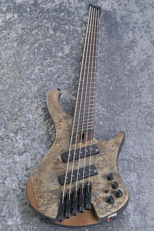 Посмотрите Ibanez EHB1505MS в цвете Black Ice Flat - элегантный, эргономичный 5-струнный бас с многотрековой настройкой без головки, который сочетает стиль и функциональность.