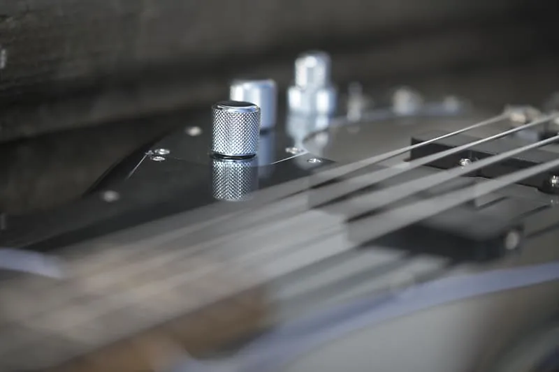 Управление: общая громкость, кастрюля (селектор звукоснимателя), усиление/обрезка высоких частот, усиление/обрезка басов, активный/пассивный мини-переключатель