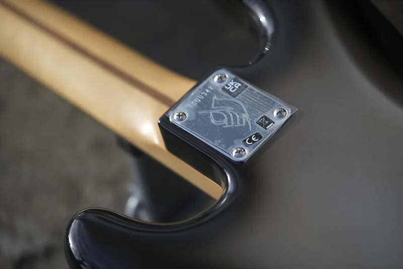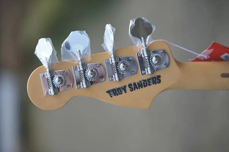Трой заказал индивидуальный гриф, разработанный для комфорта и производительности, на базе P-Bass 70-х годов с гладкой сатиновой отделкой задней части.