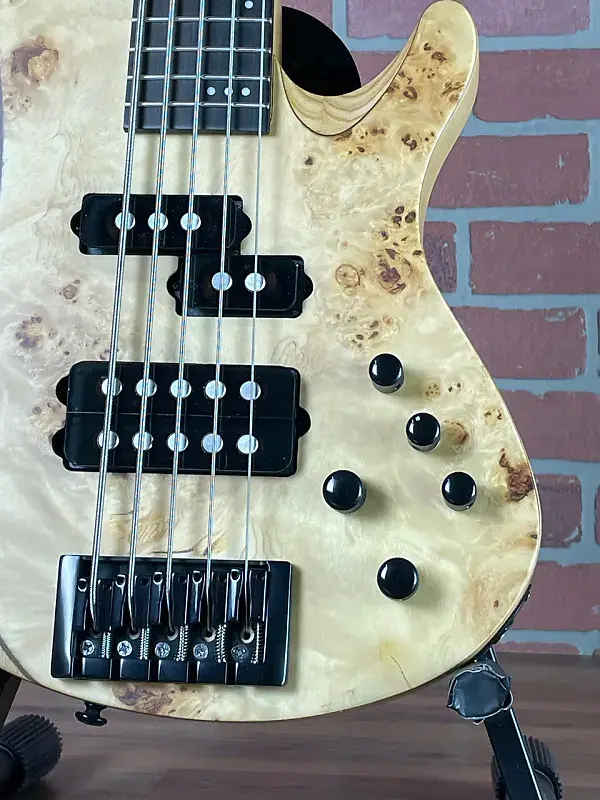 Reaper-5 имеет корпус из болотного ясеня с великолепной верхней частью из фигурной тополя-бурля, обеспечивая как исключительные тональные характеристики, так и впечатляющий визуальный эффект. Болотный ясень обеспечивает яркий, выразительный тон с отличной продолжительностью звучания, который сделал его любимцем среди профессиональных басистов, а верхняя дека из карельской тополи придает уникальный визуальный характер и дополнительную тональную сложность. Длина мензуры 35" увеличивает натяжение струн и четкость, что особенно полезно для игры на низкой струне B.