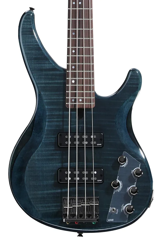 4-струнная электрическая бас-гитара с корпусом из цельного ольхового дерева, верхняя дека из кленового фламэ, гриф из клена/махaгони, грифовая накладка из розового дерева, 2 хамбакерных звукоснимателя и активный трехполосный эквалайзер - Индиго синий.