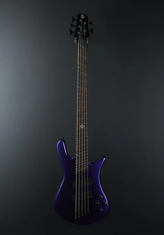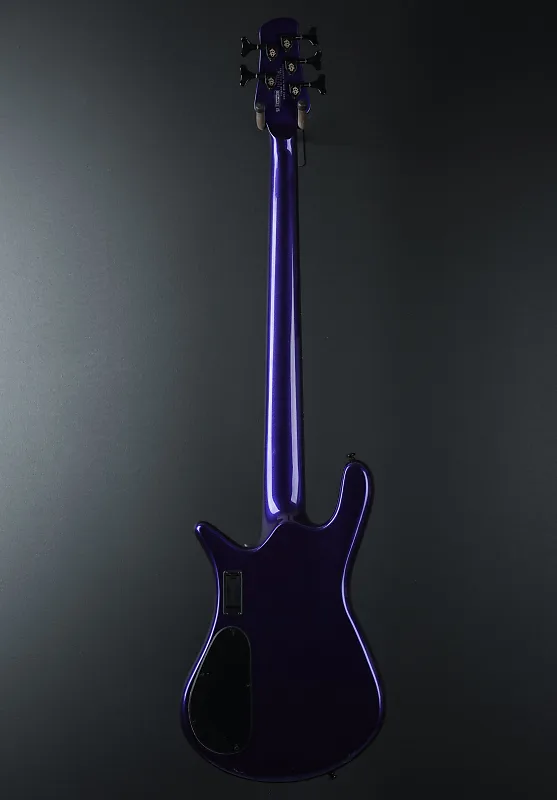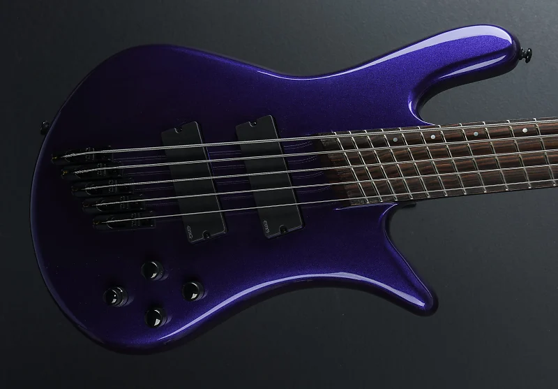 Plum Crazy, корпус из твердой ольхи Wings, гриф Wenge со смещенными точечными вставками и ладами 24 лада на кленовом грифе из 3 частей, длина мензуры 34-37 дюймов, латунная гайка шириной 1,81 дюйма, активные звукосниматели EMG 45DC и предусилитель Darkglass Tone Capsule, регуляторы громкости, смешивания, высоких частот, басов, средних и высоких средних частот, индивидуальный многомасштабный бридж с медными седлами, литые под давлением тюнеры Spector, 9,8 фунтов, поставляется с чехальной сумкой.
