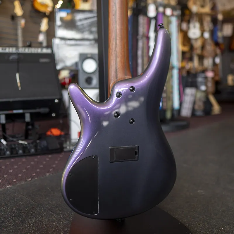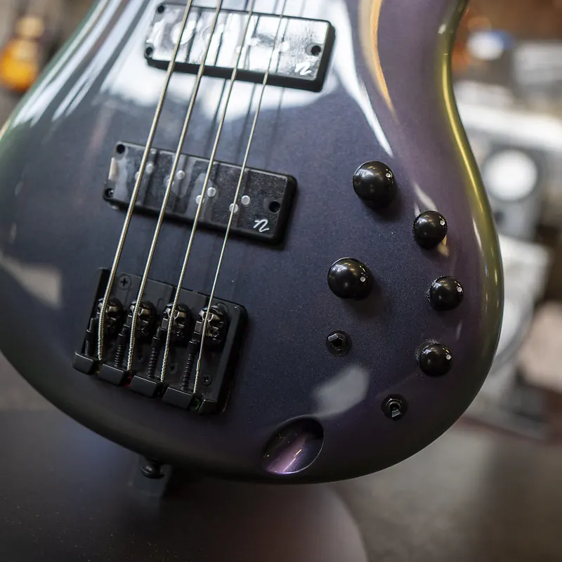 Бас-гитара Ibanez SR500E в цвете Black Aurora Burst (модель SR500EBAB) - это тщательно изготовленный инструмент, предназначенный как для современных, так и для традиционных басистов. Эта гитара сочетает в себе знаменитое мастерство Ibanez с инновационными функциями, создавая универсальный и динамичный инструмент. SR500E имеет легкий корпус из окуме, 5-составной гриф из ятоба и ореха, а также накладку из палисандра, что обеспечивает сбалансированное тональное звучание с акцентом на четкость средних частот и превосходную артикуляцию. Оснащенная хамбакерами Bartolini BH2 и 3-полосным эквалайзером Ibanez Custom Electronics, гитара предлагает плотное низкое звучание, ударные средние частоты и мягкий отклик, позволяя музыкантам точно формировать свой звук. Мост серии Accu-cast B500 улучшает удобство игры, позволяя регулировать расстояние между струнами, а переключатель обхода эквалайзера добавляет тональную вариативность, делая эту бас-гитару адаптируемой к любому музыкальному жанру.
