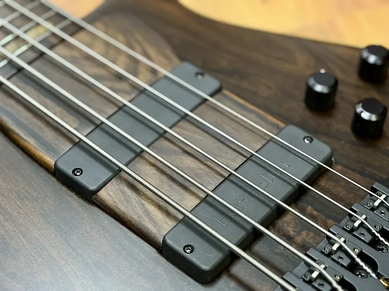Что касается оборудования, мост представляет собой блок ETS немецкого производства с шагом 19 мм. Тюнеры Hipshot Ultralite помогают контролировать вес баса, а также уменьшают погружение грифа. Нам просто нравится гриф и общая играбельность. Комбинация узкой гайки (43 мм) с широким расстоянием между ними мост (19 мм) вероятно является одним из лучших решений для комфорта в обеих руках. Некоторые бас-гитары с 5 струнами могут показаться немного устрашающими, но в этом случае тонкая шея и идеальные размеры делают игру на Aural II очень легкой.