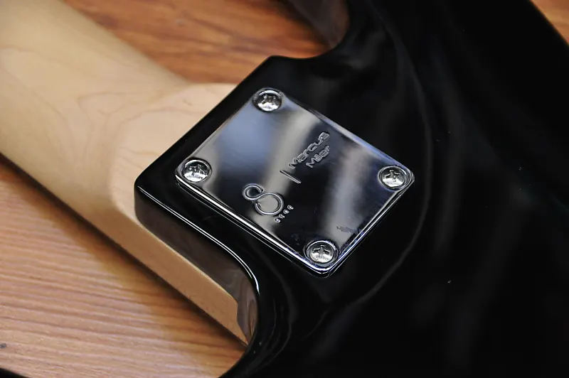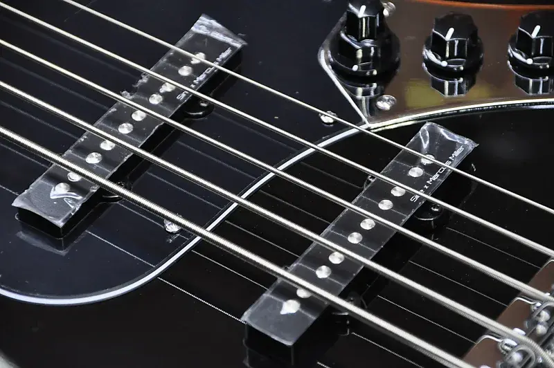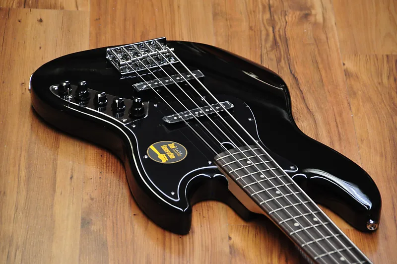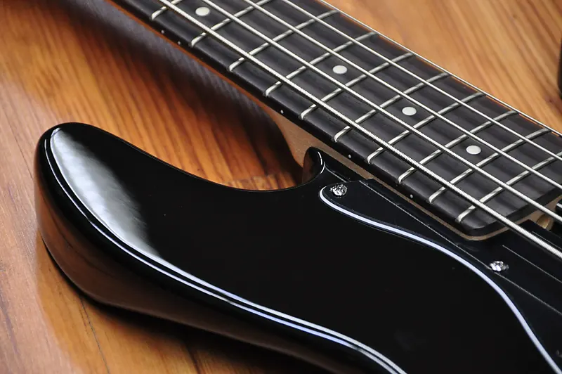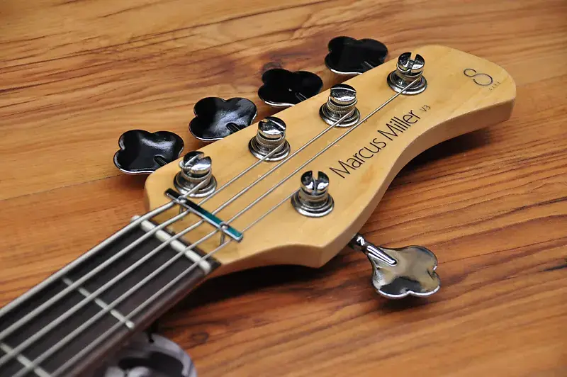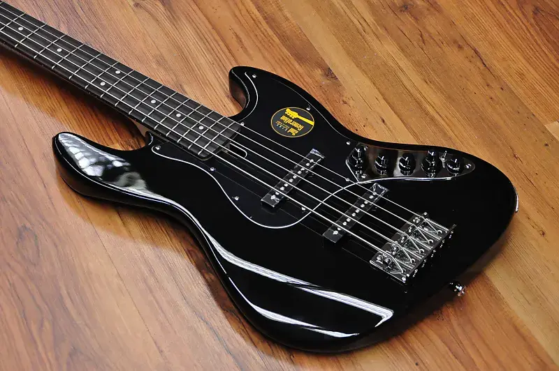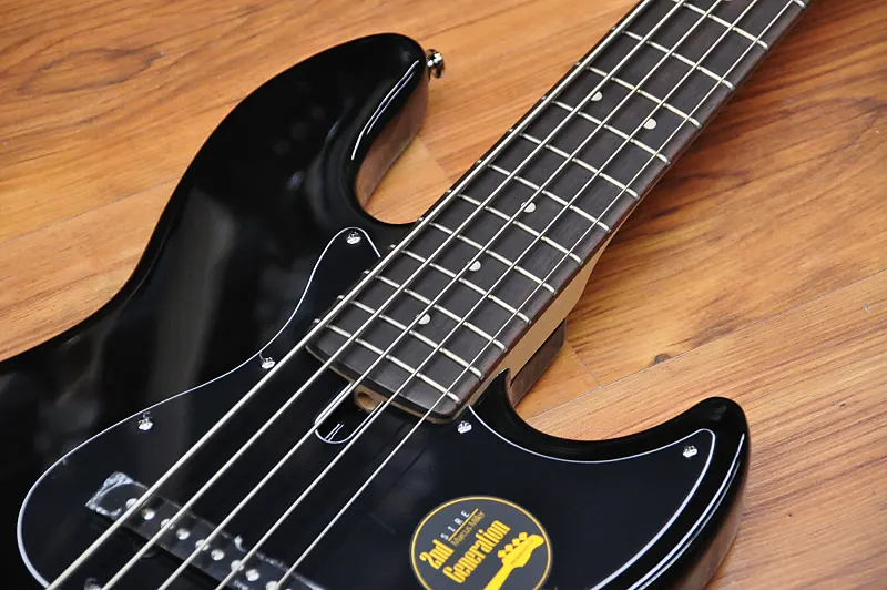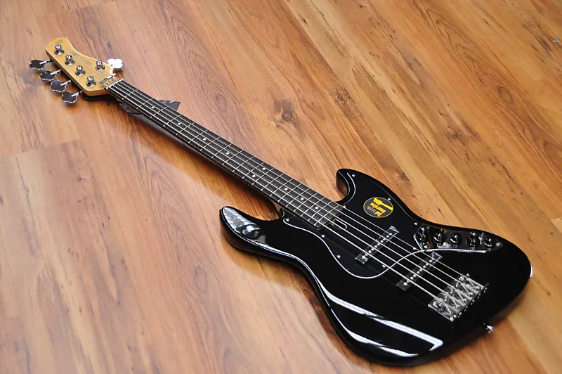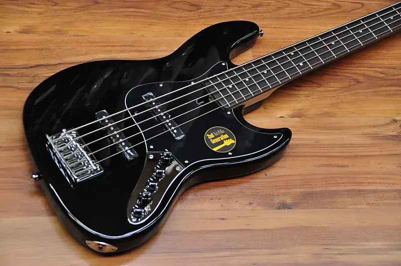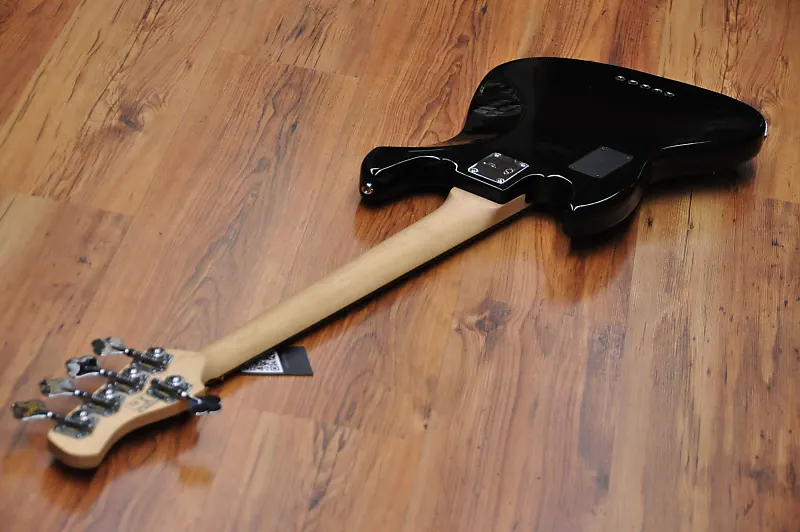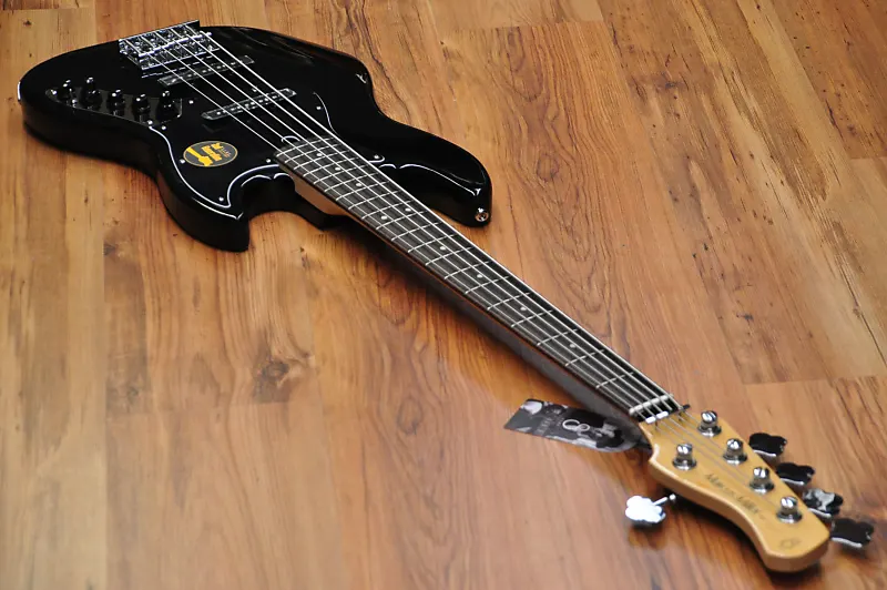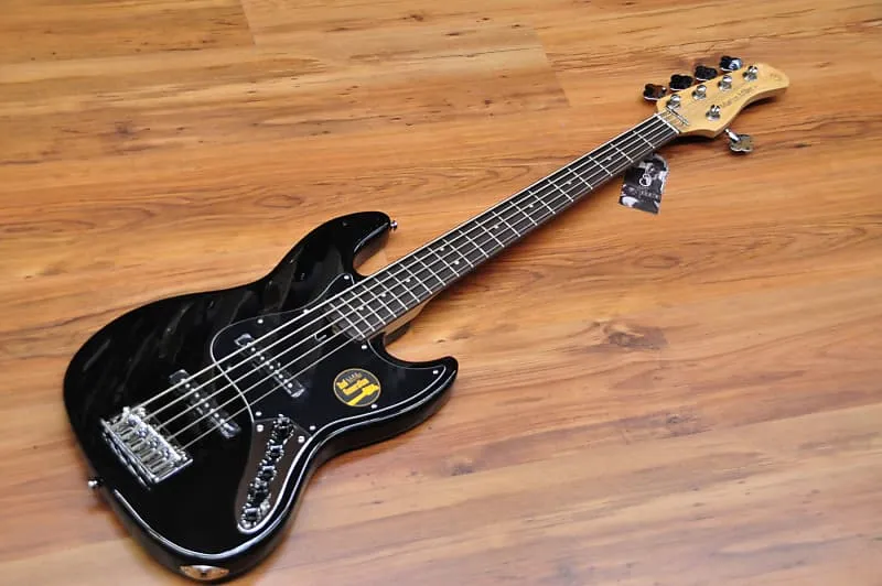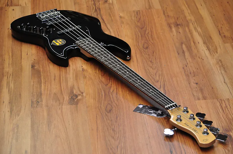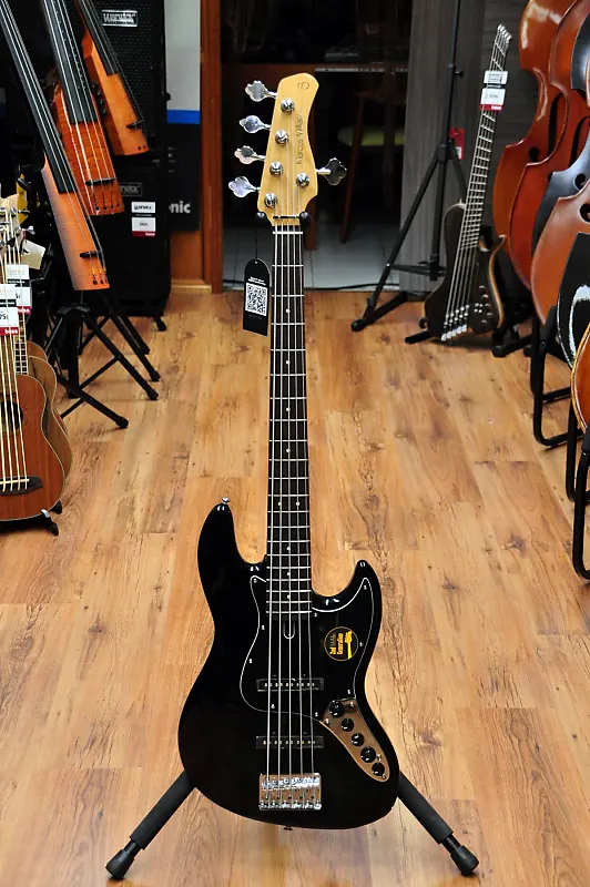Это Marcus Miller V3 второе поколение 5-струнной модели. Она окрашена в черный цвет и имеет точки на грифе