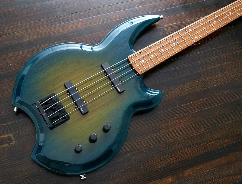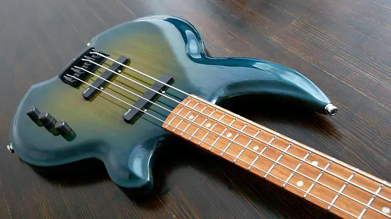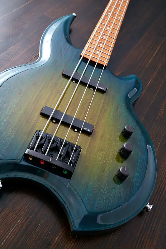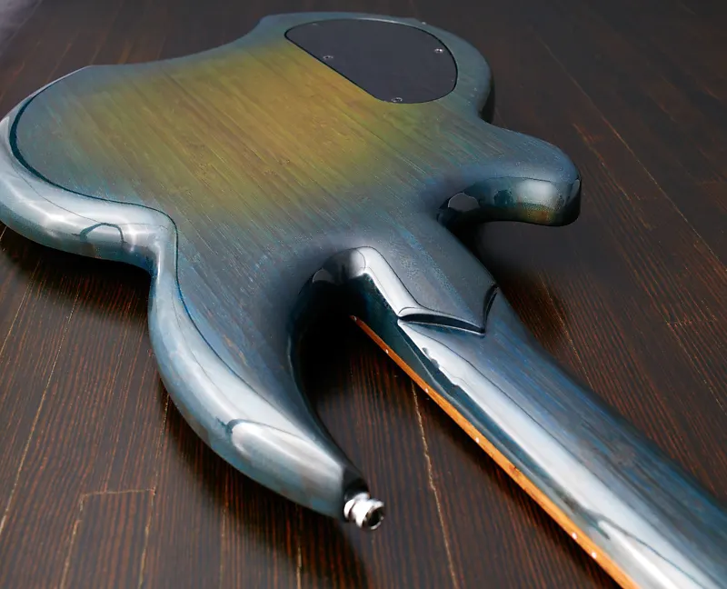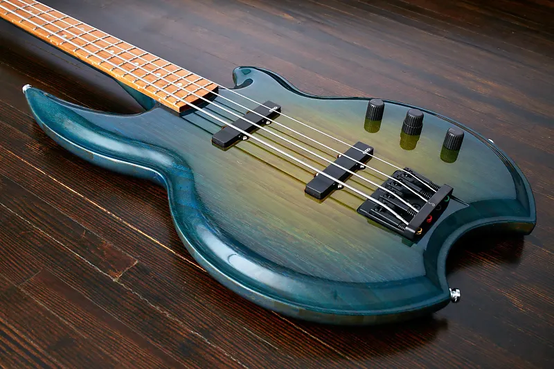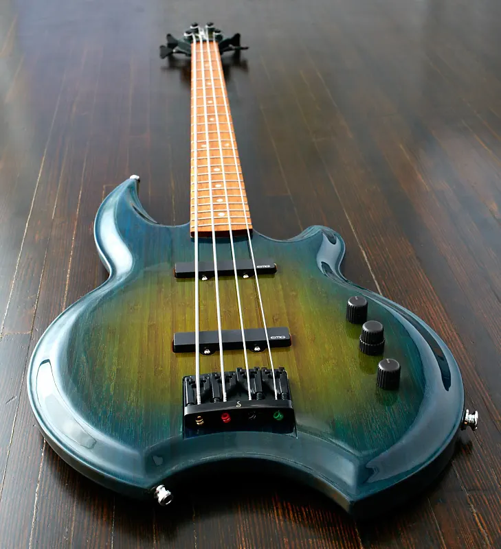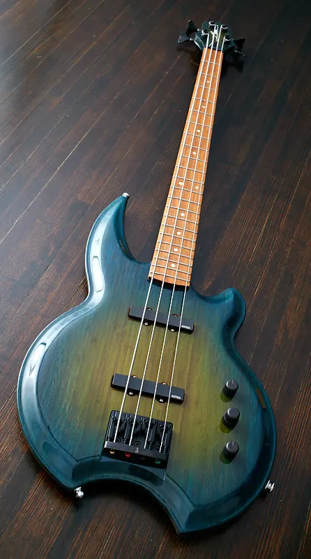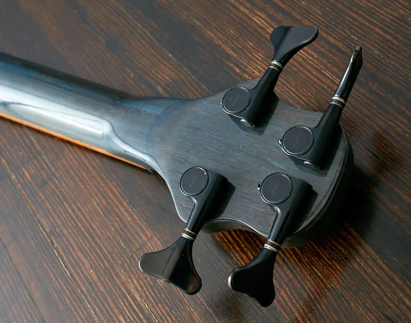 Lizzard - это джазовый бас из цельного бамбука с масштабом 34 дюйма и грифом Playboo Strand с радиусом 14''. Механика Gotoh, Graph Tech Black Tusq бридж, 1 5/8 дюймов, 22 лада из нержавеющей стали Jascar, звукосниматели EMG jazz с активным эквалайзером, мост Schaller, серийный номер #201000003, вес 8,80 фунтов. Поставляется с фиксирующими ремнями и сумкой для инструмента. Это современный бас, но может звучать винтажно при приглушении эквалайзера, очень сбалансирован при игре с ремнем.