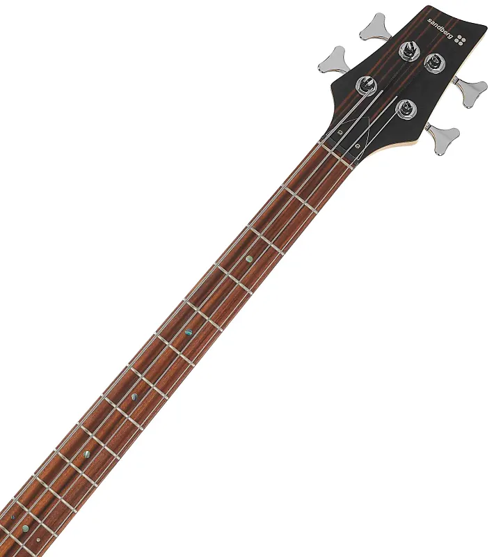 Корпус четырехструнной бас-гитары Sandberg Basic MT PF 3TS изготовлен из европейского ясеня. К шее из канадского клена, прикрепленной к корпусу с помощью шести винтов, приклеена накладка грифа из дерева пау ферро с двадцатью четырьмя ладами. Для удобства ориентирования на грифе установлены перламутровые метки (Abalone).