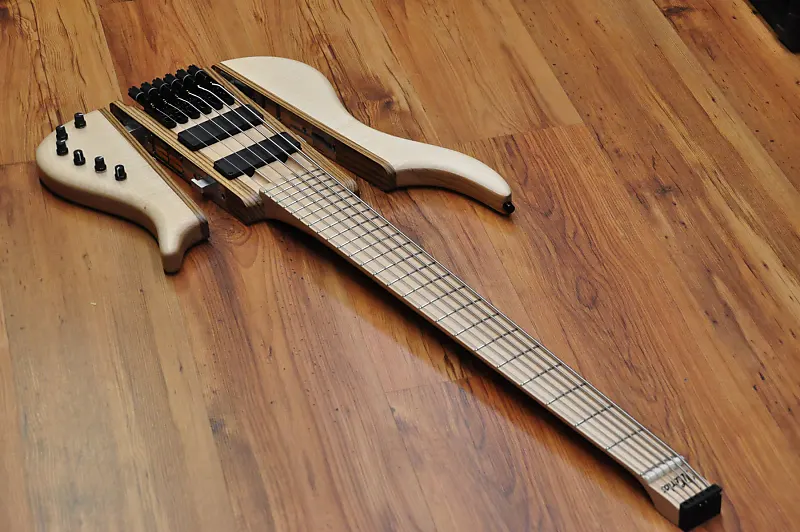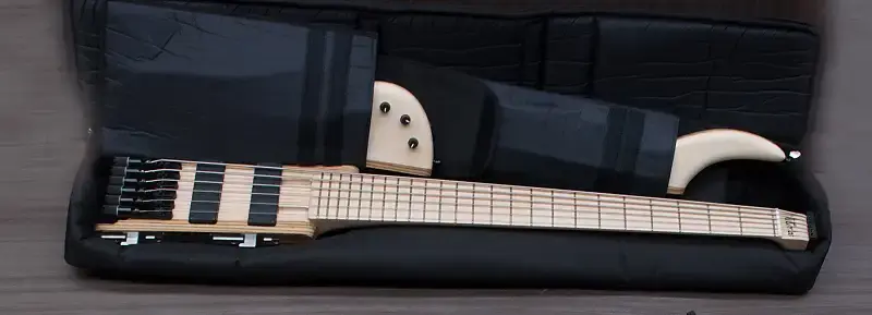 Как вы можете видеть, это бесголовый инструмент с чистым и стильным дизайном, идеальной играбельностью, полностью сбалансированный и с великолепным звуком. Особенность состоит в том, что оба крыла можно отсоединить примерно за 5 секунд и хранить вместе с грифом через корпус в удобном небольшом кейсе, размеры которого составляют всего 103 см x 21 см x 15 см (длина, глубина, ширина).