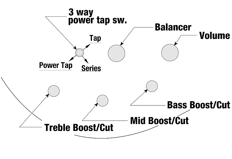 - 3-позиционный переключатель Power Tap С помощью 3-позиционного переключателя Power Tap, звукосниматели предлагают выбор из трех тональных характеристик: богатый звук хамбакера, чистый звук сингл-кoила или усиленный звук сингл-кoила, обогащенный низкими частотами от хамбакер-звукоснимателей.