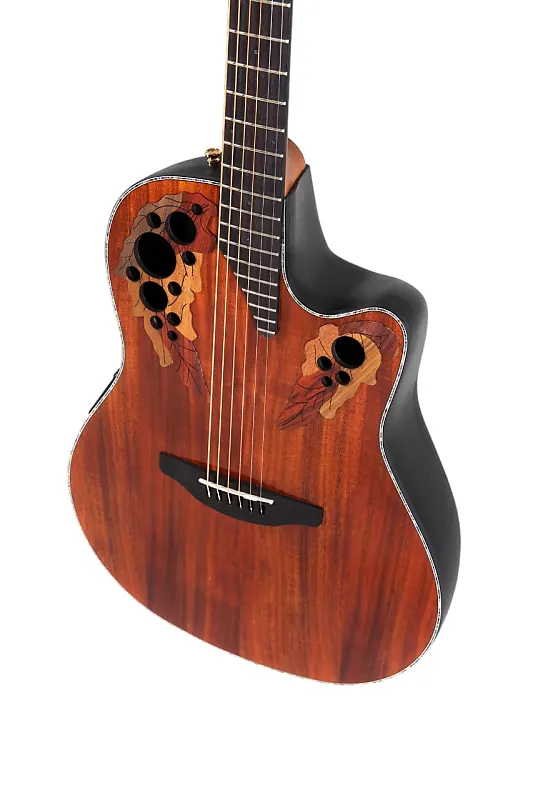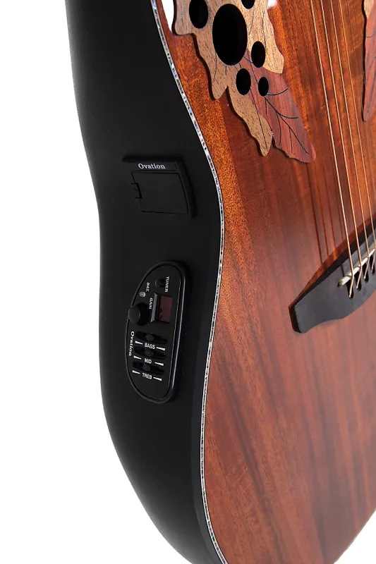 Кроме того, они оснащены типичными для Ovation множественными резонаторными отверстиями. Эта инновационная конструкция использует несколько небольших отверстий по краю верхней дека гитары вместо одного центрального отверстия.