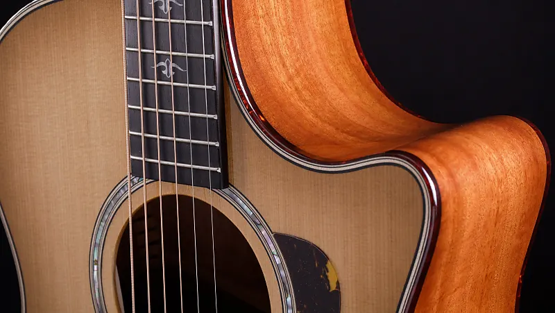 Наша первая гитара Grand Auditorium с корпусом и боковинами из Urban Ironbark, модель 514ce, обеспечивает сладкий и мощный звук, который сочетает высокую точность тембра палисандра с теплым и выразительным средним диапазоном и балансом звука по всему спектру, присущим махагони. В паре с верхней декой из термообработанной елки Ситка для зрелого, отточенного звучания и усиленной системой распорок V-Class для увеличения громкости и сустейна, 514ce обладает мощью, подходящей для энергичной игры и чувствительностью к касанию, что позволяет воспроизводить широкий динамический диапазон, особенно подходящий для игры пальцами. С новыми инкрустациями Aerial из итальянского акрила, однокольцевой розеткой из абалона, аккуратной окраской, подчеркивающей богатые красные оттенки Urban Ironbark, слегка затемненными краями и корпусом с глянцевой отделкой, 514ce сочетает в себе традиционные и современные визуальные стили. Гитара поставляется с электроникой ES2 и роскошным жестким футляром.